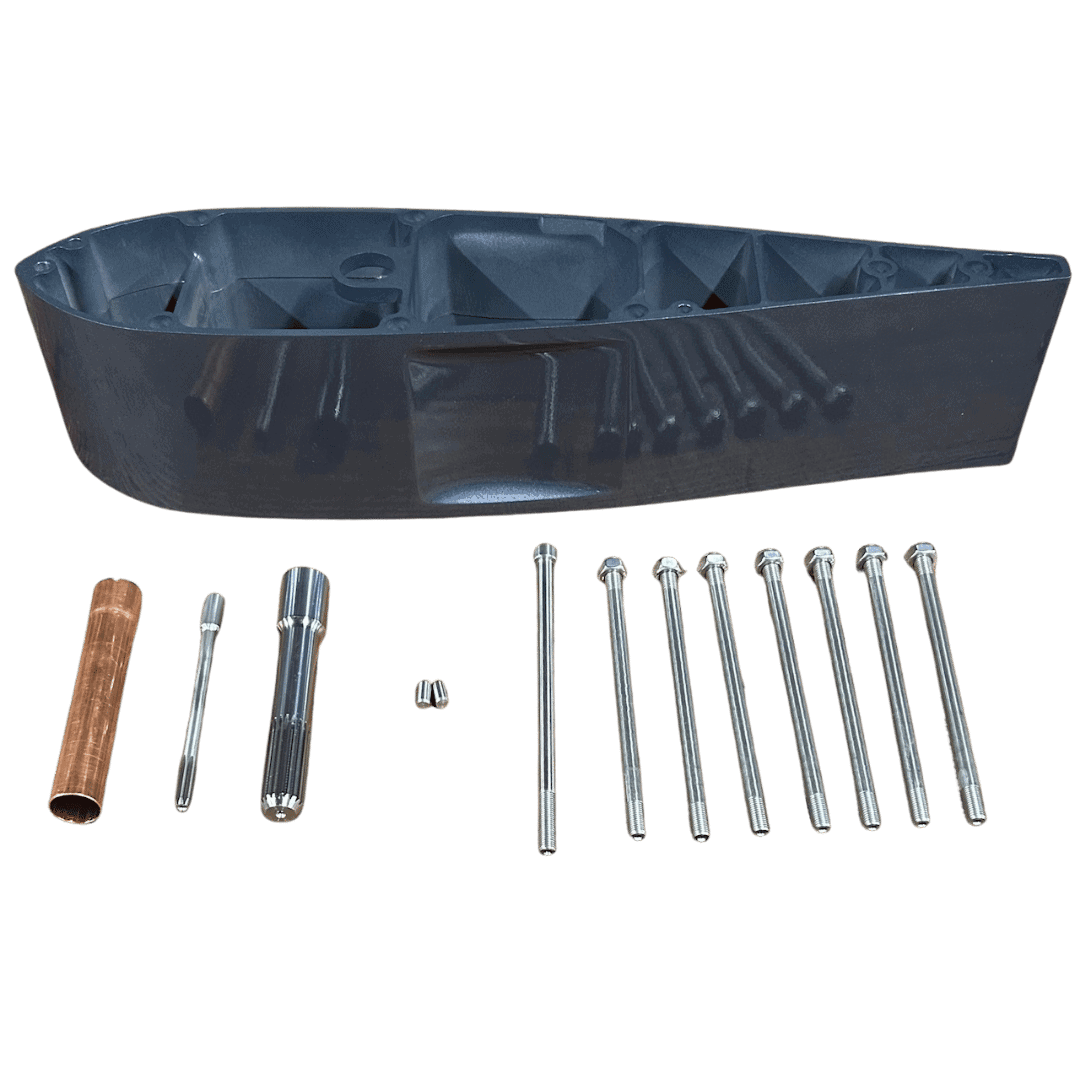 Parts Included: (1) 5″ housing, (1) 5″ drive shaft, (1) 5″ shift shaft, (1) 5″ water tube, (7) studs and nuts, (1) socket screw, (2) dowel pins, (1) speedometer tube – optional